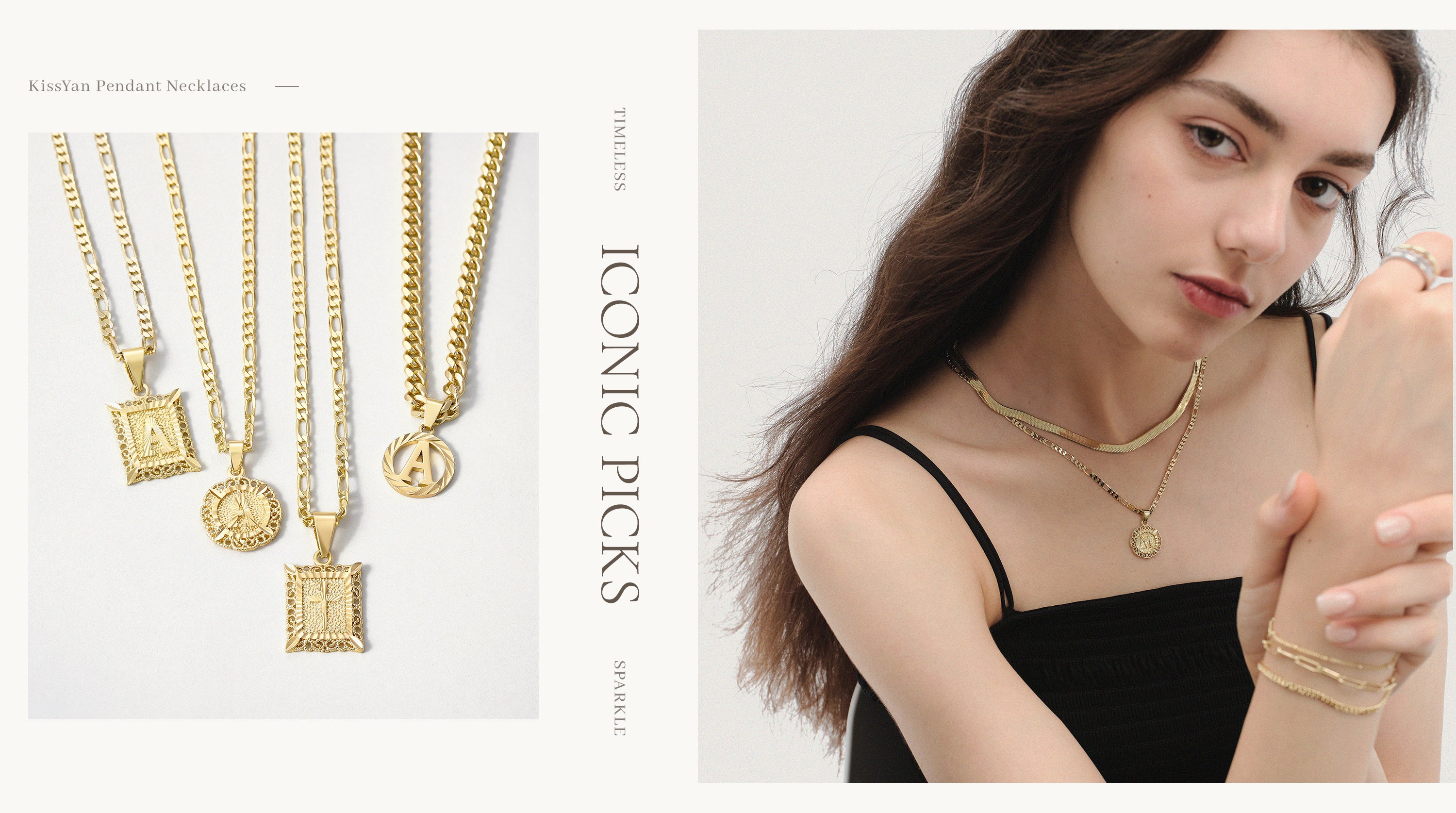 KissYan Beaded Layered Pendant Necklace with Link Chain