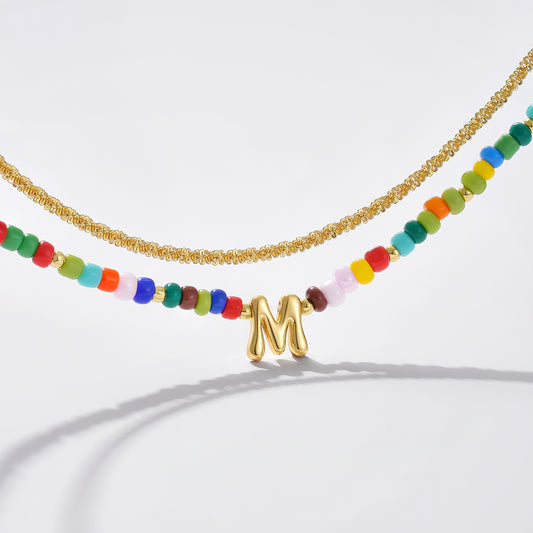 KissYan Colorful Beaded Gemstone Choker Bubble Letter Pendant
