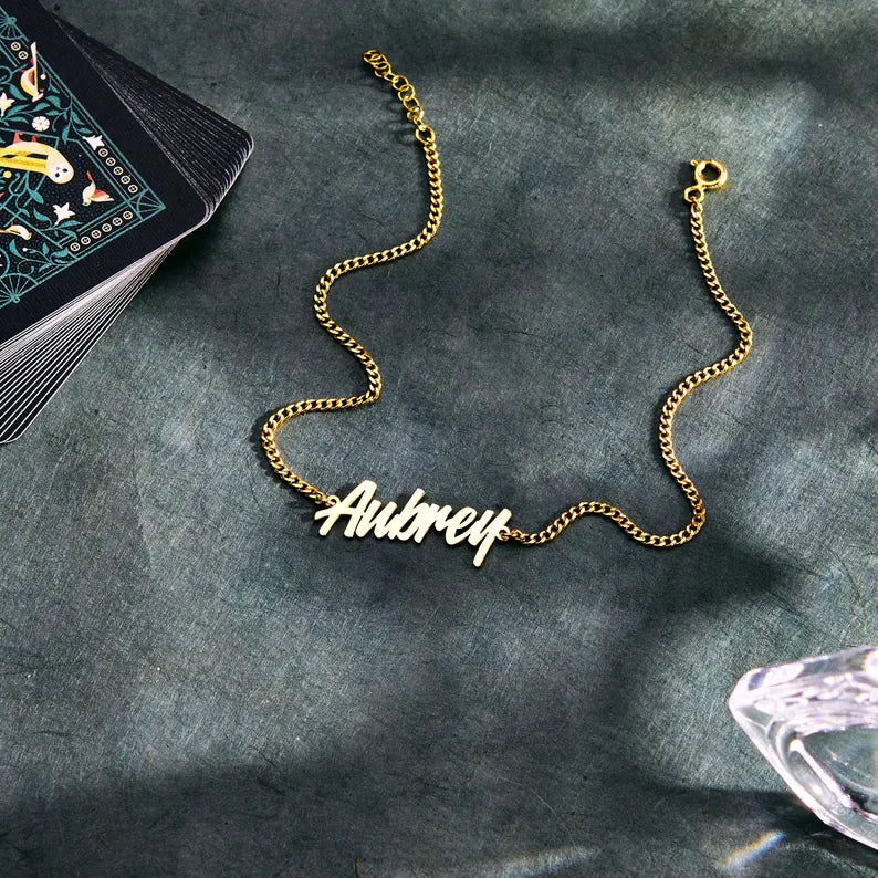 A delicate chain that wraps around your ankle, engraved with a name you cherish — whether it’s your own, your lover’s, a child’s, or a word that holds your heart. It’s not just jewelry. It’s a quiet reminder, a personal secret, a step-by-step celebration of who and what matters most.